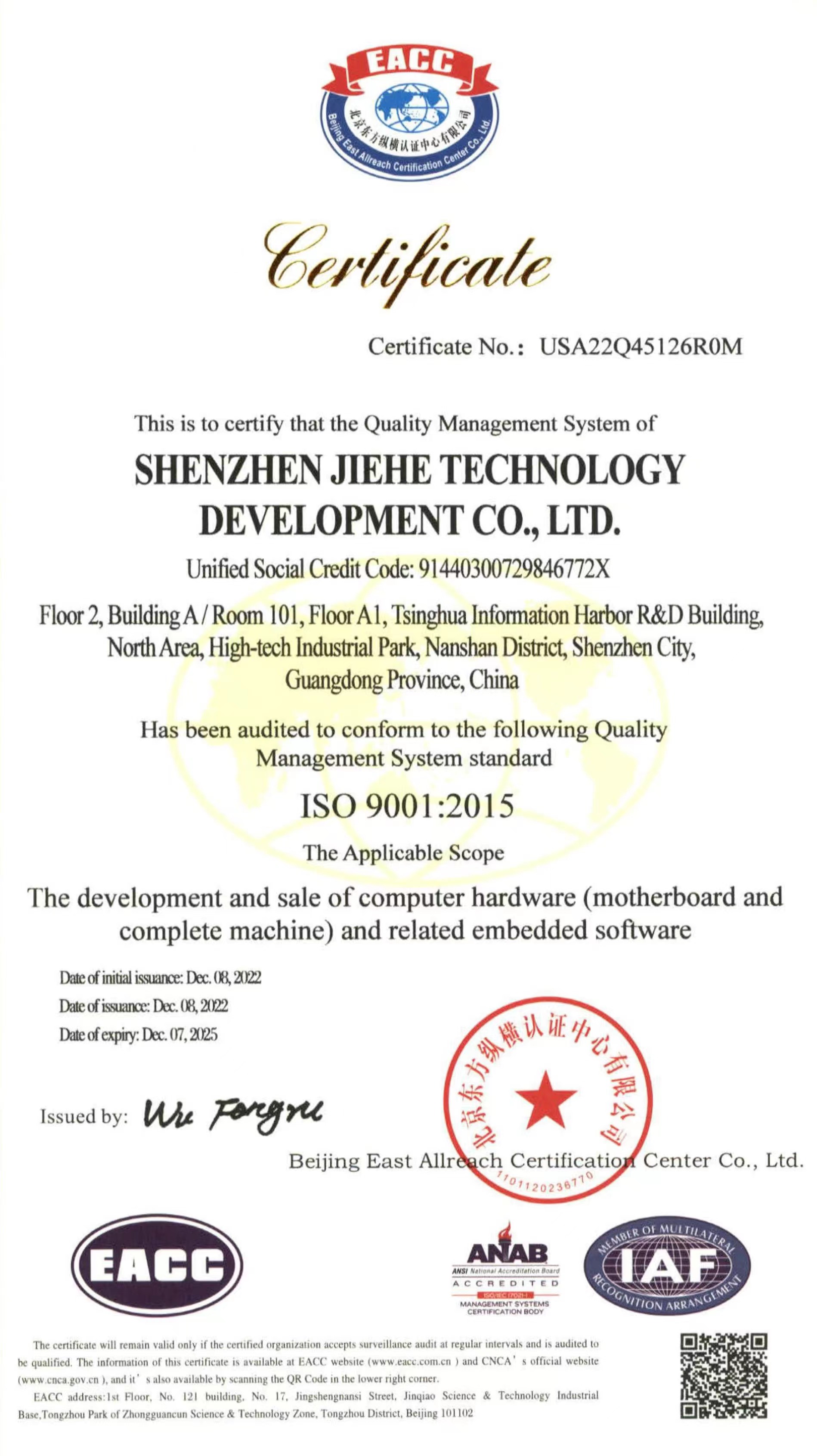 ISO9001质量管理体系认证作为国际标准化组织的管理性质标杆,它的地位可见一斑,其认可彰显了918博天堂(中国区)科技的体系管理以及产品的质量。918博天堂(中国区)科技在过去几年不断提升设备标准化生产的能力,减少人为质量问题,把ISO9001质量管理体系理念贯穿于产品研发—生产全流程。