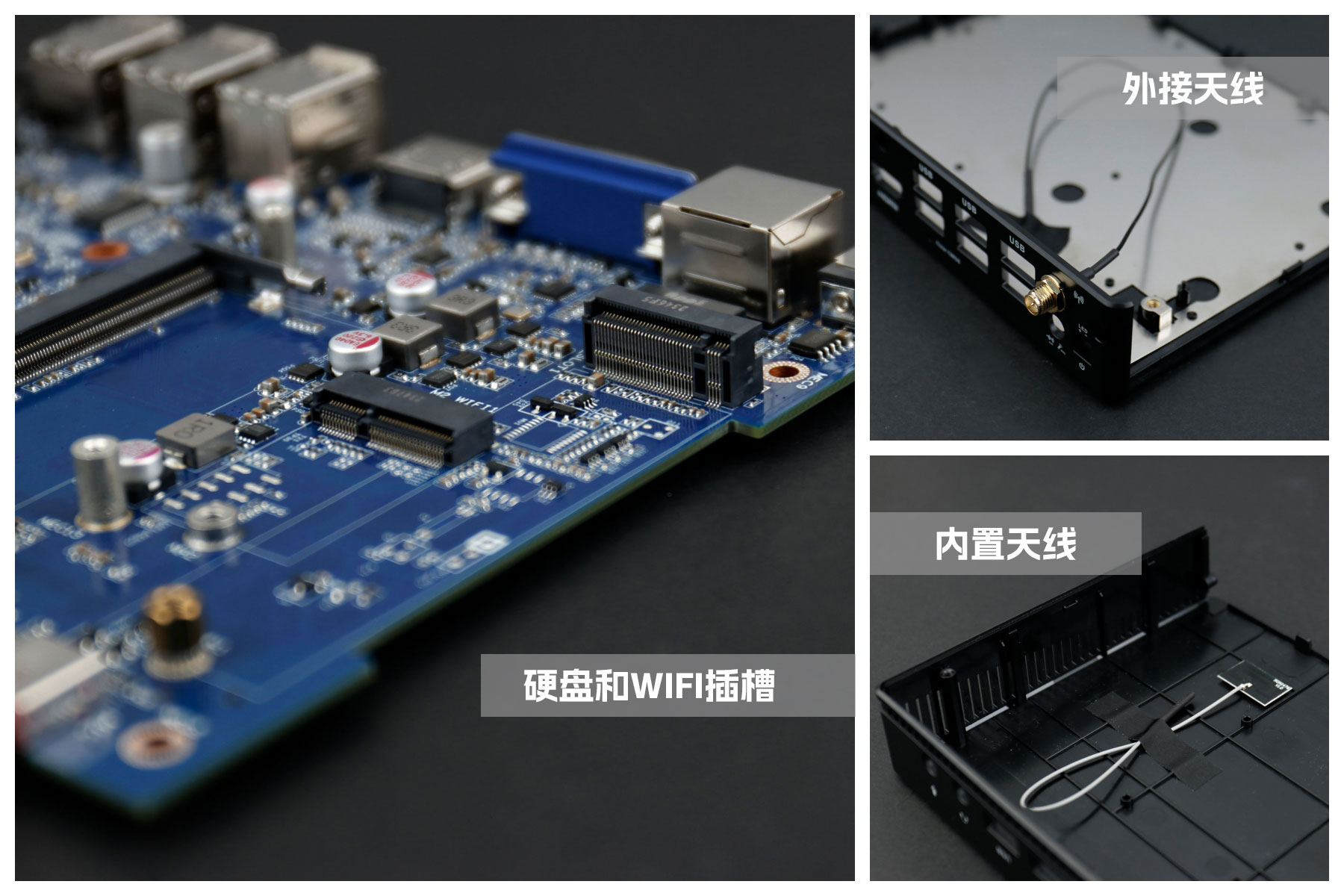 918博天堂(中国区)桌面云终端Y-BOX S2主板上配备了 1个 M.2 固态硬盘位,接口规格为 PCIe3.0 标准,匹配标准的 2280 规格硬盘。一侧还有一个M.2接口,匹配2230长度的WIFI/BT模块插槽,WiFi模块可以连接的是外接天线,增强信号,同时也可以内接天线,灵活应用,支持Wi-Fi 5/6/6E网络。