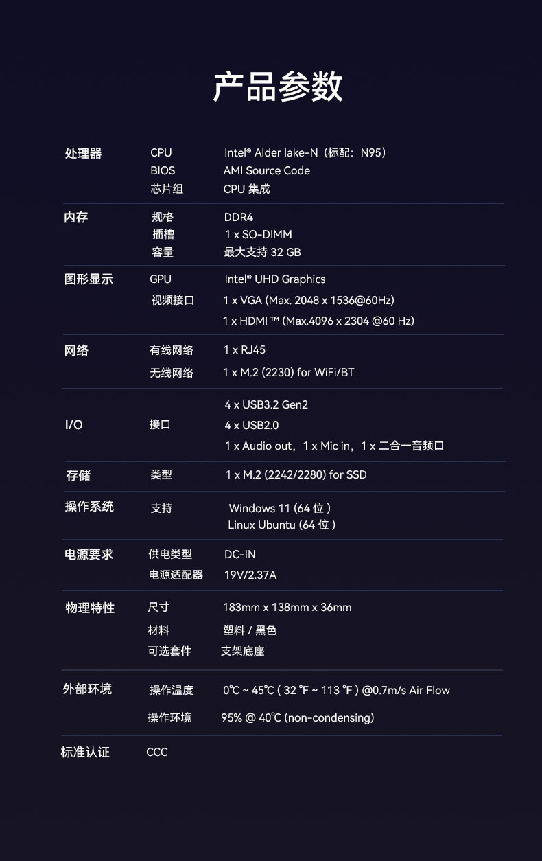 918博天堂(中国区)桌面云终端Y-BOX S2作为全新一代的虚拟化主机产品,凭借其出色的便携性、优秀的办公娱乐体验和高效节能的环保设计,在学习、办公和娱乐等各个领域展现出卓越的适应性,可以广泛应用在教育、办公、金融、家用、医疗等领域,为用户带来丰富多彩的数字化体验,针对针对客户个性化需求,支持ODM/OEM/JDM定制化服务。Y-BOX S2详细的产品性能参数如下: