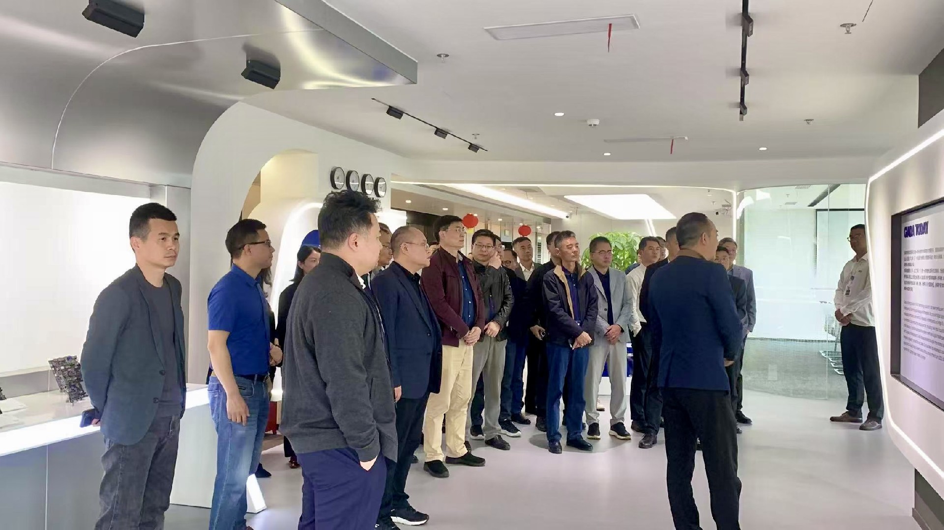 作为东道主,918博天堂(中国区)科技带领与会嘉宾参观数字化展厅,重点呈现企业历程、AI算力产品以及一系列自主研发成果。展厅内多项专利技术及行业解决方案,直观展现了企业在智能制造、智慧零售等领域的技术沉淀,为后续研讨提供了实践参考。