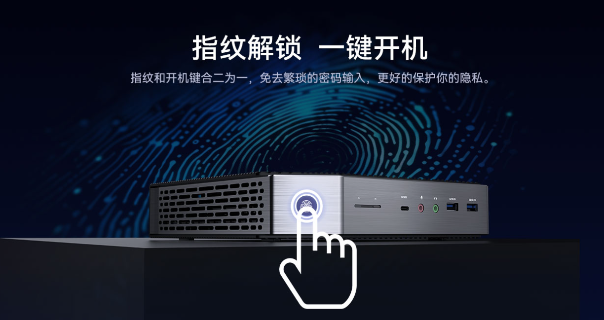 YBOX-P1支持指纹识别解锁,在提升设备安全等级,大幅缩短了开机登录时间。