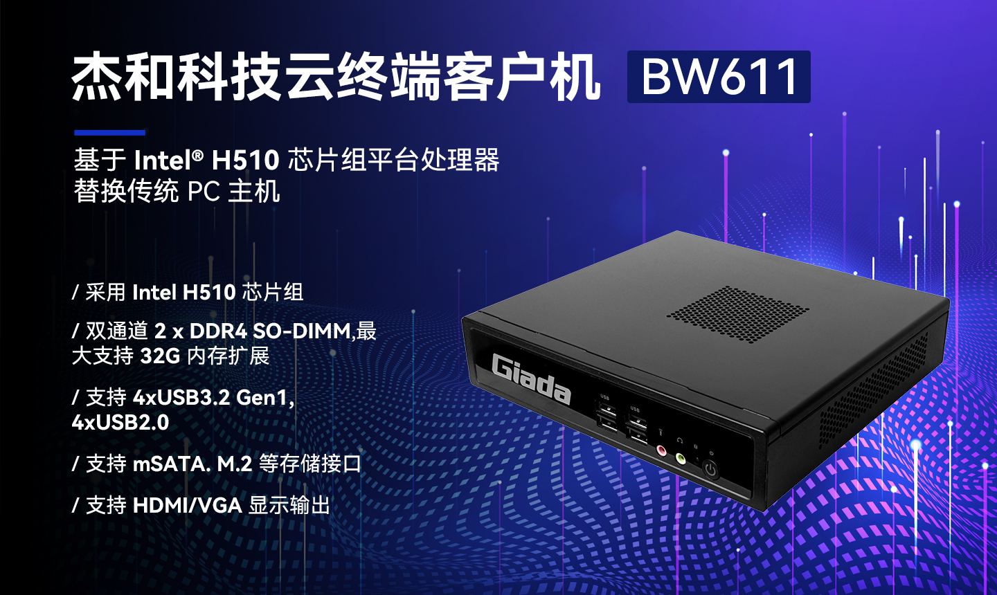 918博天堂(中国区)科技云终端BW611体积小巧、双通道内存,性能强悍,接口丰富。