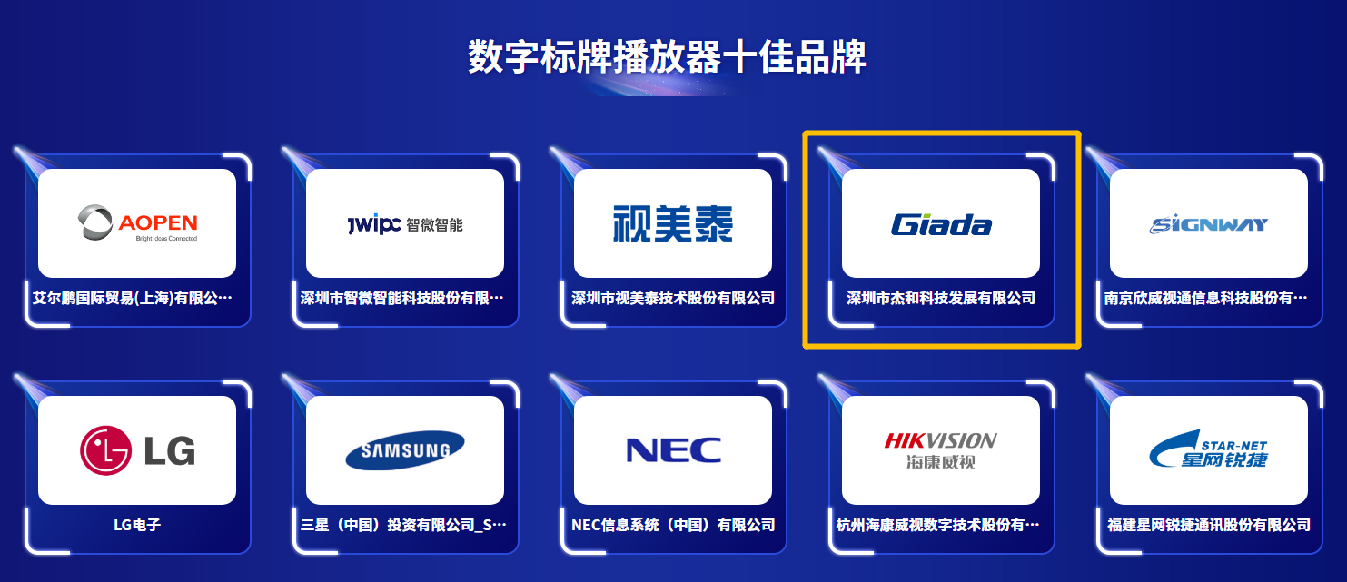 「商显主板十佳品牌」「数字标牌播放器十佳品牌」