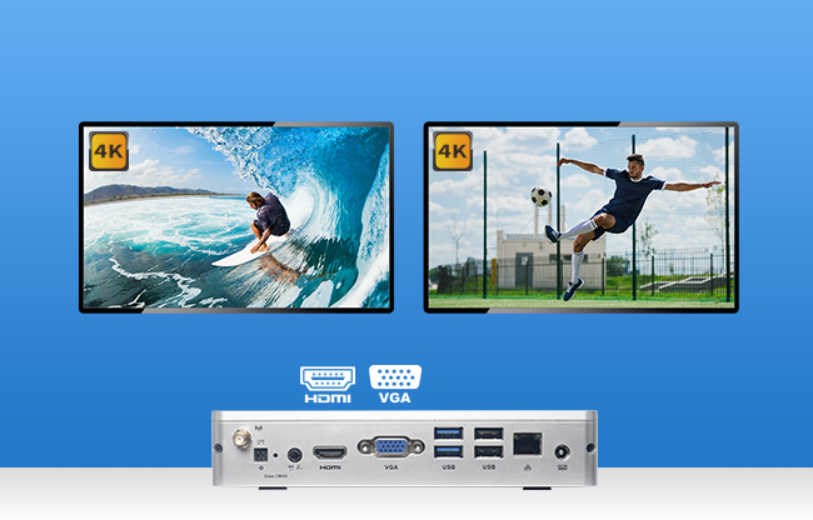 VT26采用JasperLake平台,搭载N5095处理器,使用IntelUHD Graphics,提供一组HDMI数字显示接口,支持4K超高清内容显示,一组VGA模拟显示接口,最大1080P单屏播放能力,提供高清流畅的桌面体验,为用户体验带来质的提升。