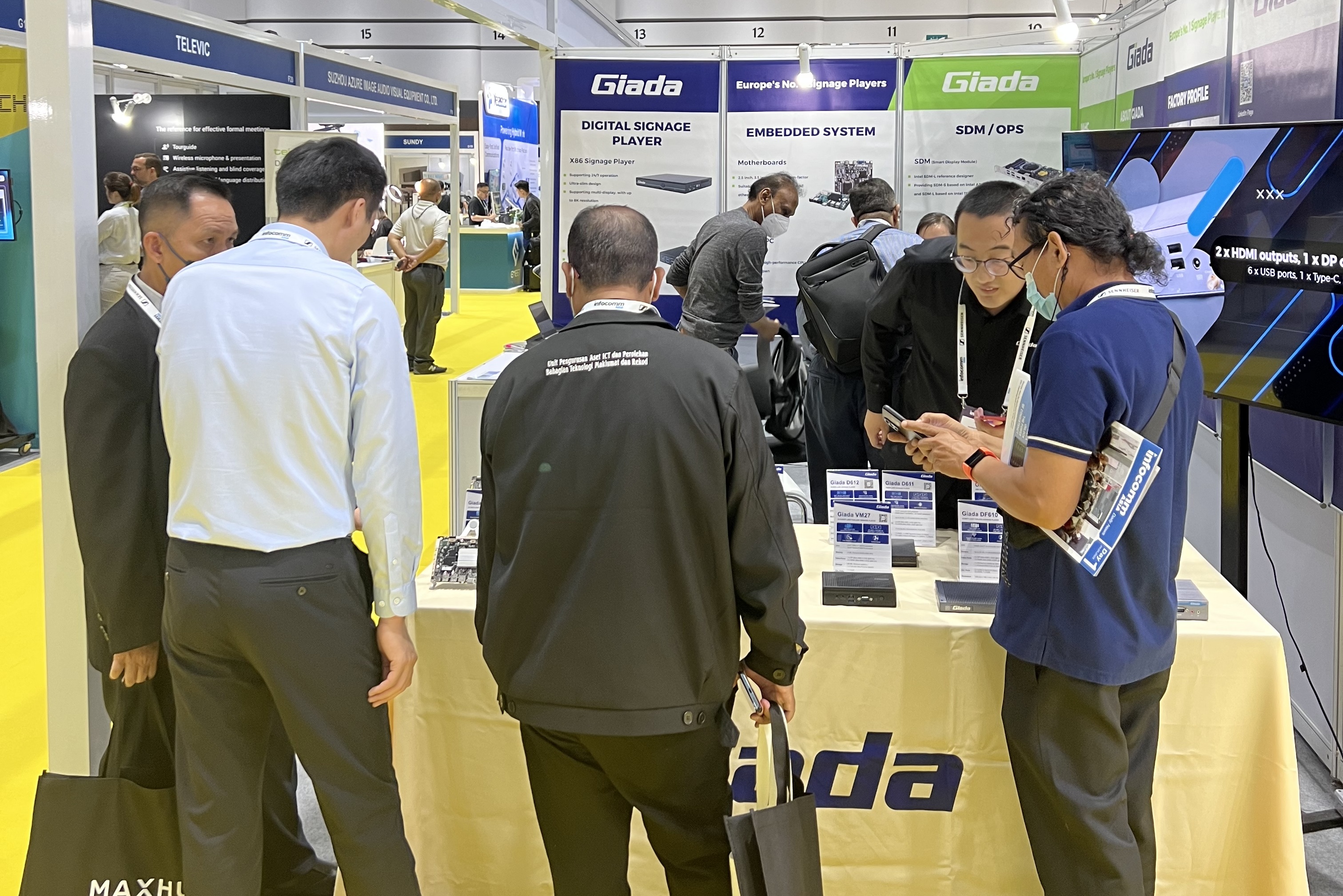 此次InfoCommAsia 2023展会,Giada918博天堂(中国区)科技携最新产品及方案亮相。致力于为全球企业客户解决智能化应用需求的918博天堂(中国区),此次展会带来了数字标牌播放器、边缘计算机、OPS/SDM和嵌入式主板等的最新产品,并展示了一系列量身定制的解决方案,以满足泰国市场的具体需求,为亚太地区的数字化转型带来全新势能。展会期间,Giada的展台现场气氛火爆,展位人流络绎不绝!