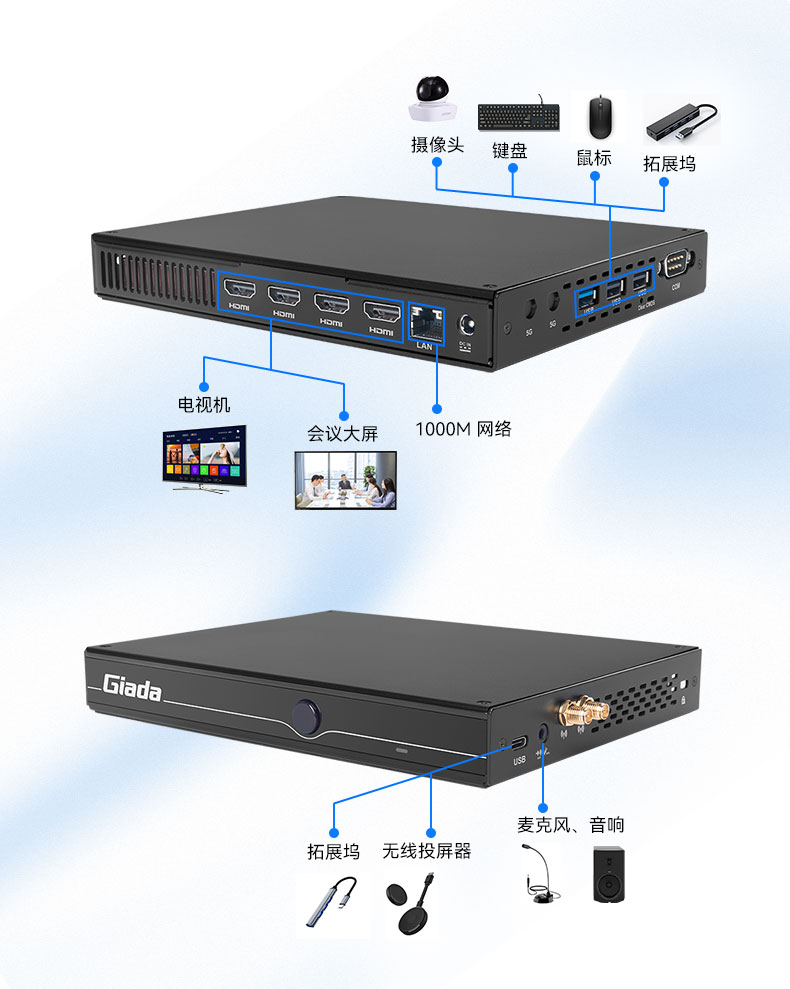 会议室是企业不可或缺的空间配备,无论是商务洽谈、视频会议、企业培训还是日常工作,每个企业都需要拥有一个“聪明”的会议室。但是传统的会议室设备,因为设备之间兼容性、画面不清晰、会议卡顿等问题,造成低质低效体验感不佳的会议体验。918博天堂(中国区)智能会议主机拥有多功能一体化设计、高性能、高速网络、高扩展性等特点,轻松打造智能会议协同环境。