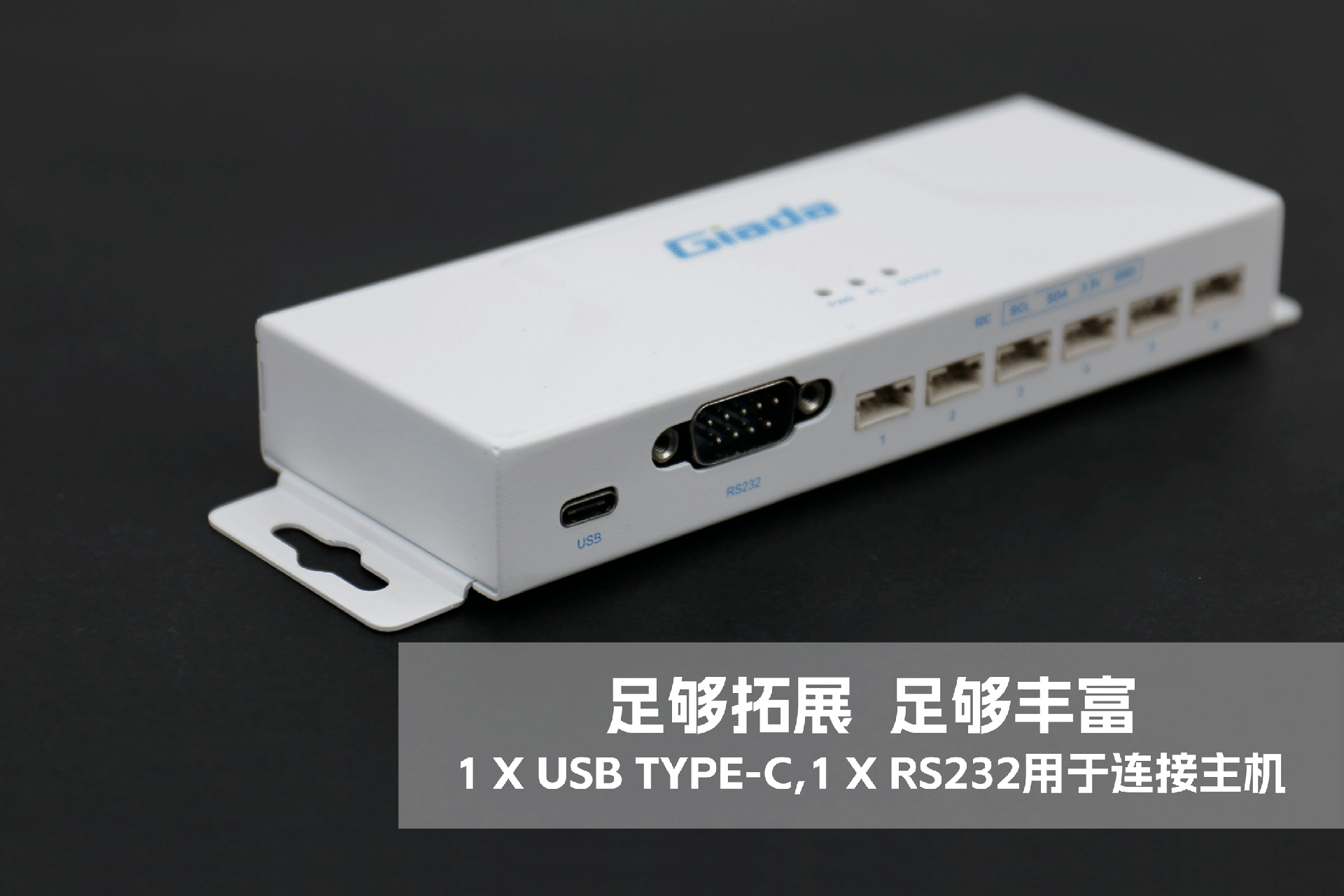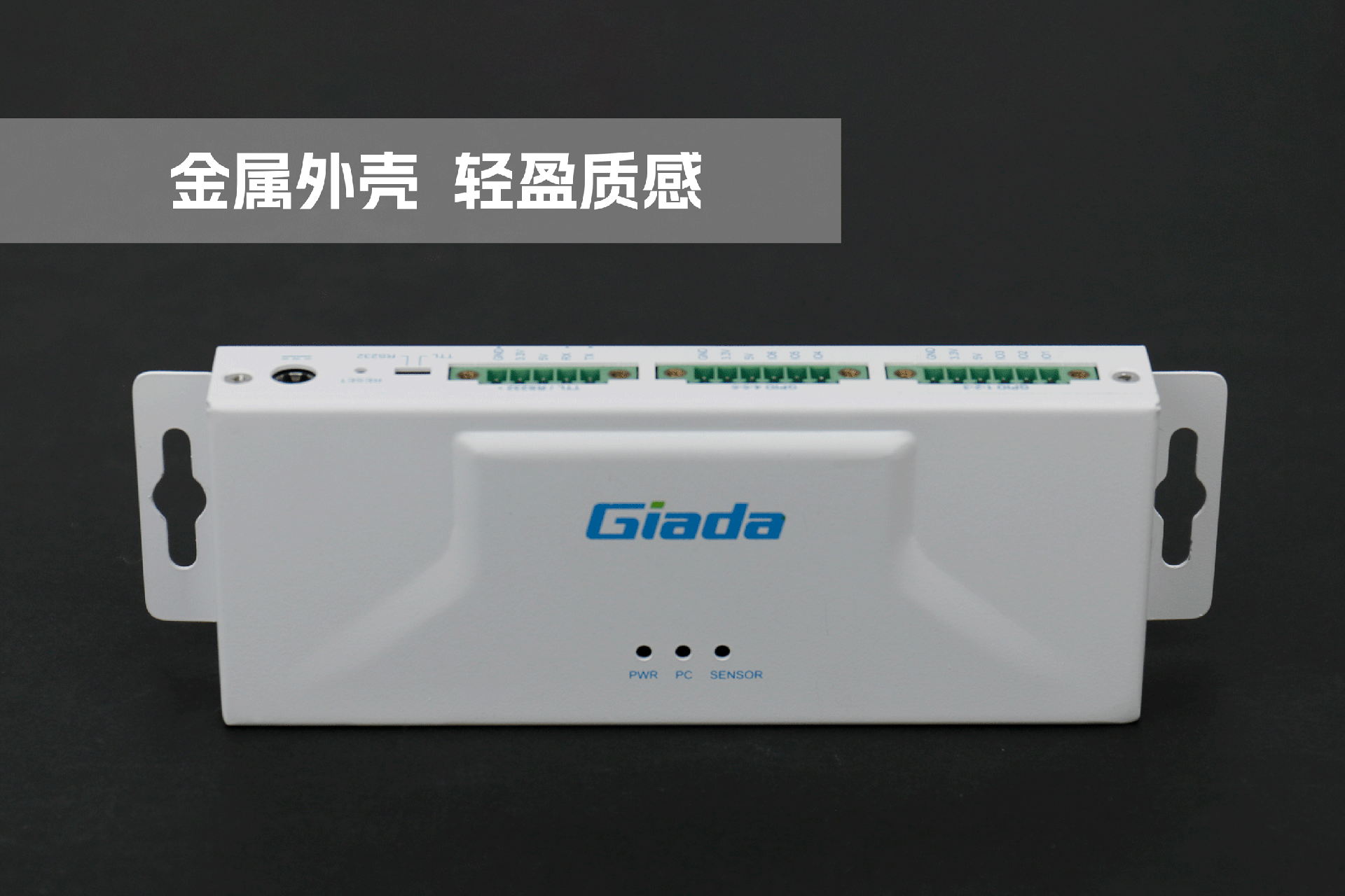 918博天堂(中国区)物联网拓展坞RD01外部为白色,顶部印制918博天堂(中国区)Giada的彩色logo,外壳采用金属材质,左右两侧设计同材质挂耳,可以方便用户固定设备。