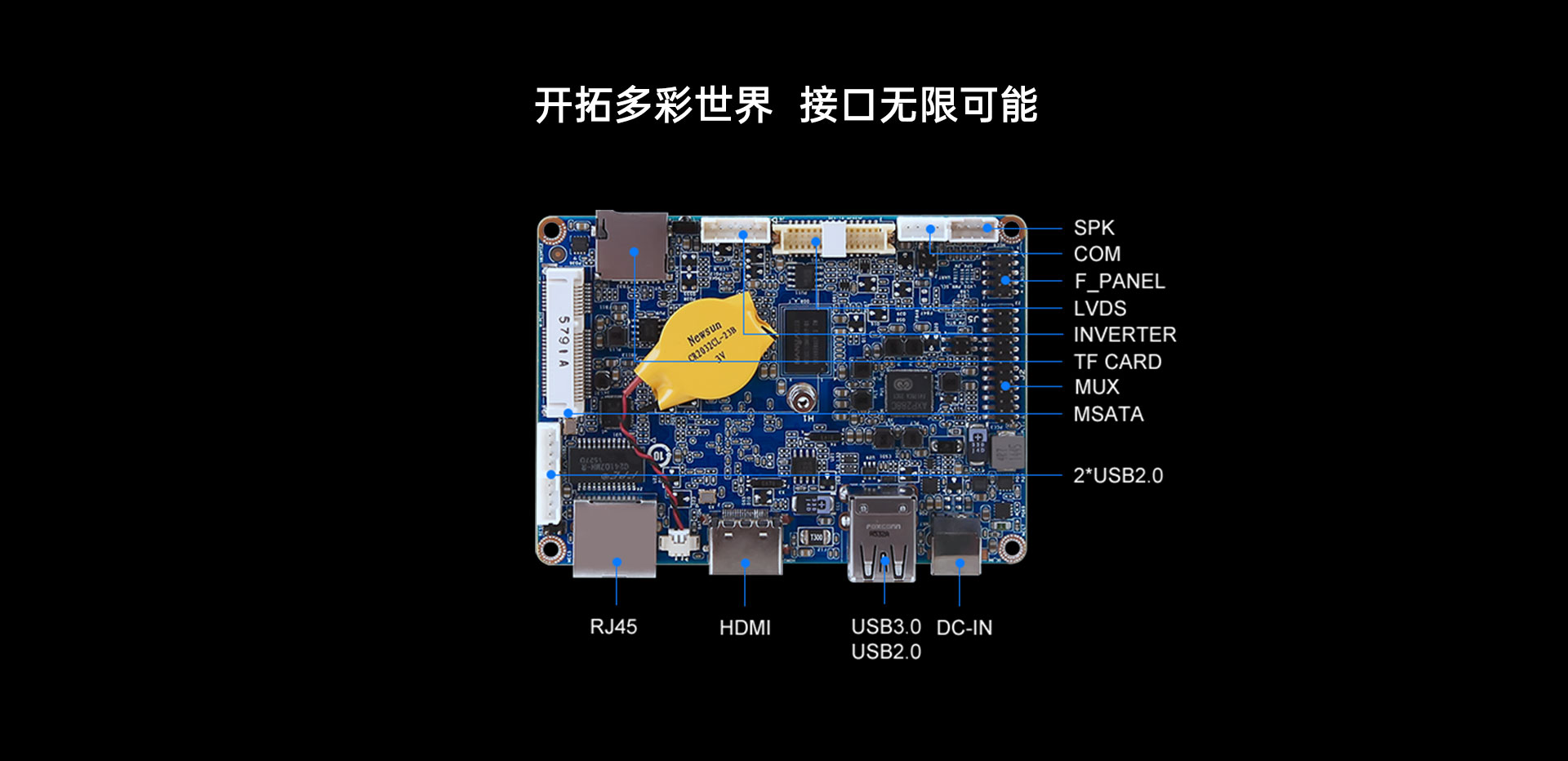 1xCOM插针,1xSIM卡槽,1xTF卡槽